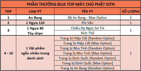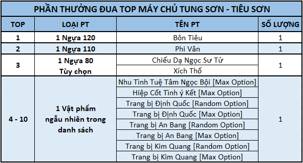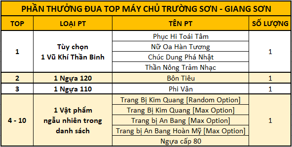 - Mỗi máy chủ sẽ có phần thưởng khác nhau.