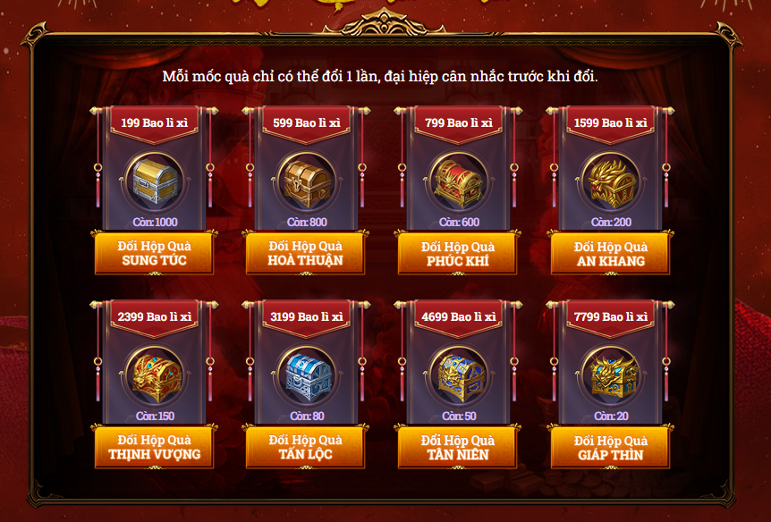 - Khi bấm đổi quà hệ thống sẽ trừ đi tương ứng số bao lì xì đã đổi quà.