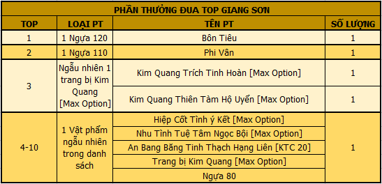 - Mỗi máy chủ sẽ có phần thưởng khác nhau.