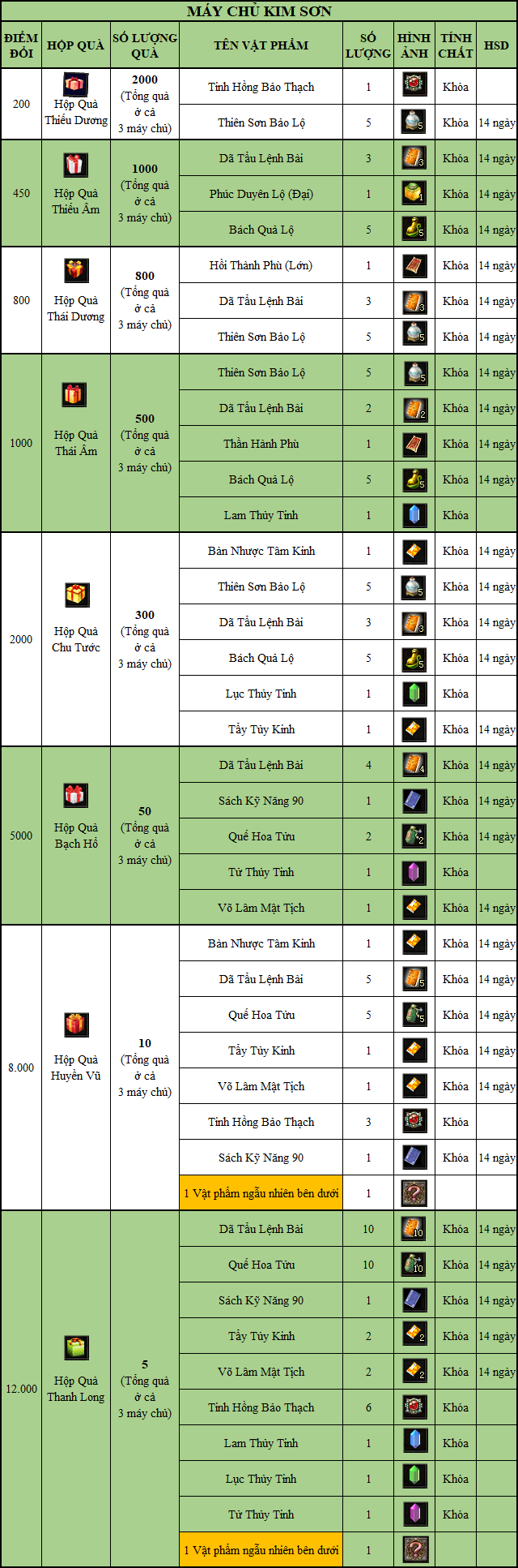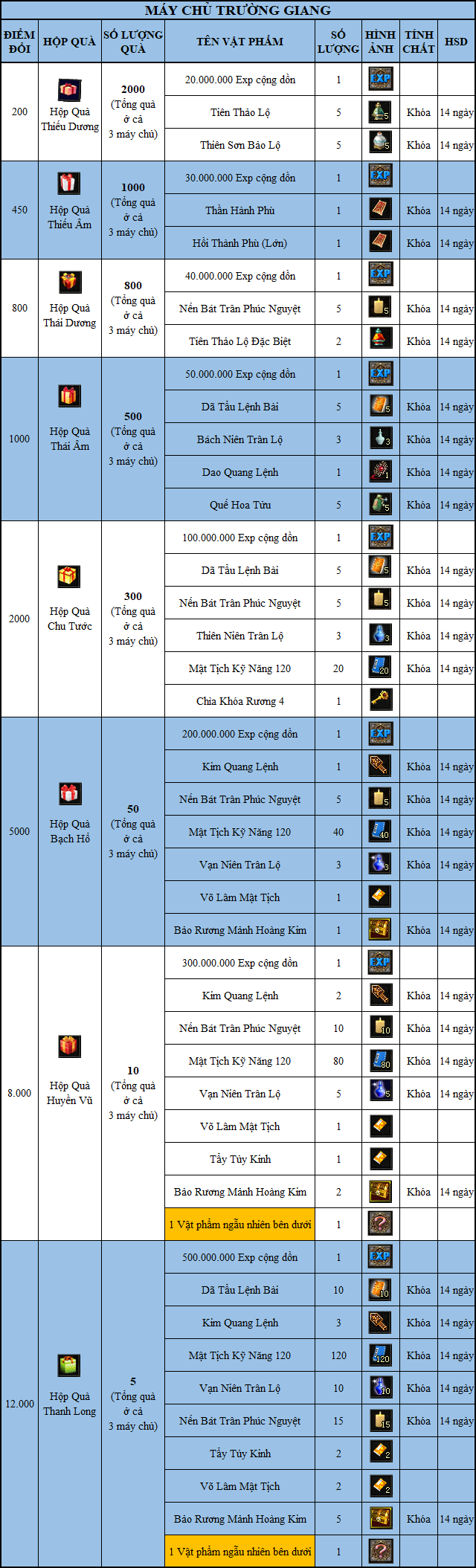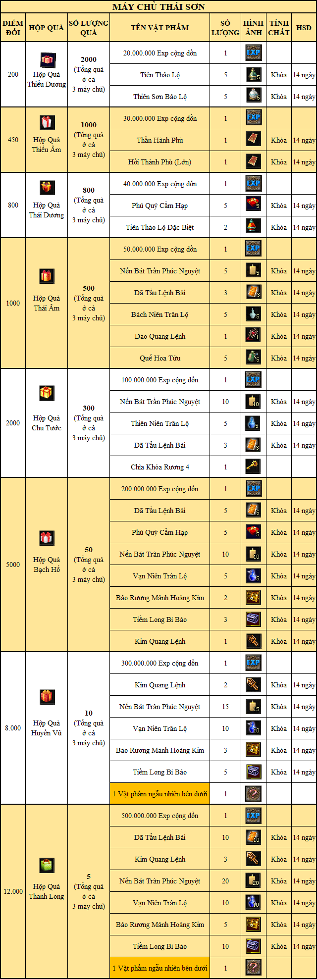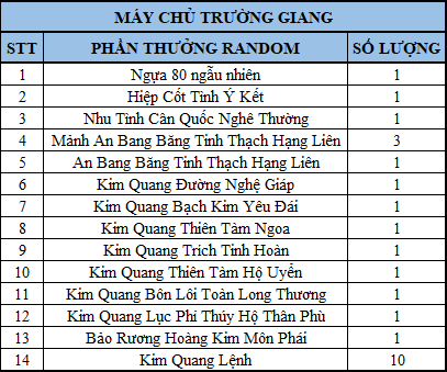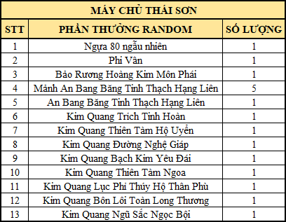 - Nhận quà ở mỗi máy chủ sẽ có phần thưởng khác nhau (số lượng quà hiển thị trong bảng là tổng quà ở cả 3 máy chủ):