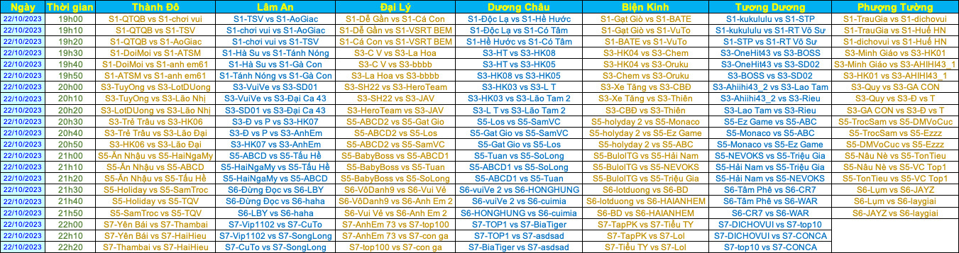 SONG TUYỆT - LỊCH THI ĐẤU 22/10