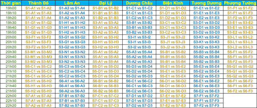 Lưu ý: Trong thời gian diễn ra giải đấu, các trận Thất Thành Đại Chiến và Quốc Chiến Thiên Tử vẫn diễn ra bình thường
