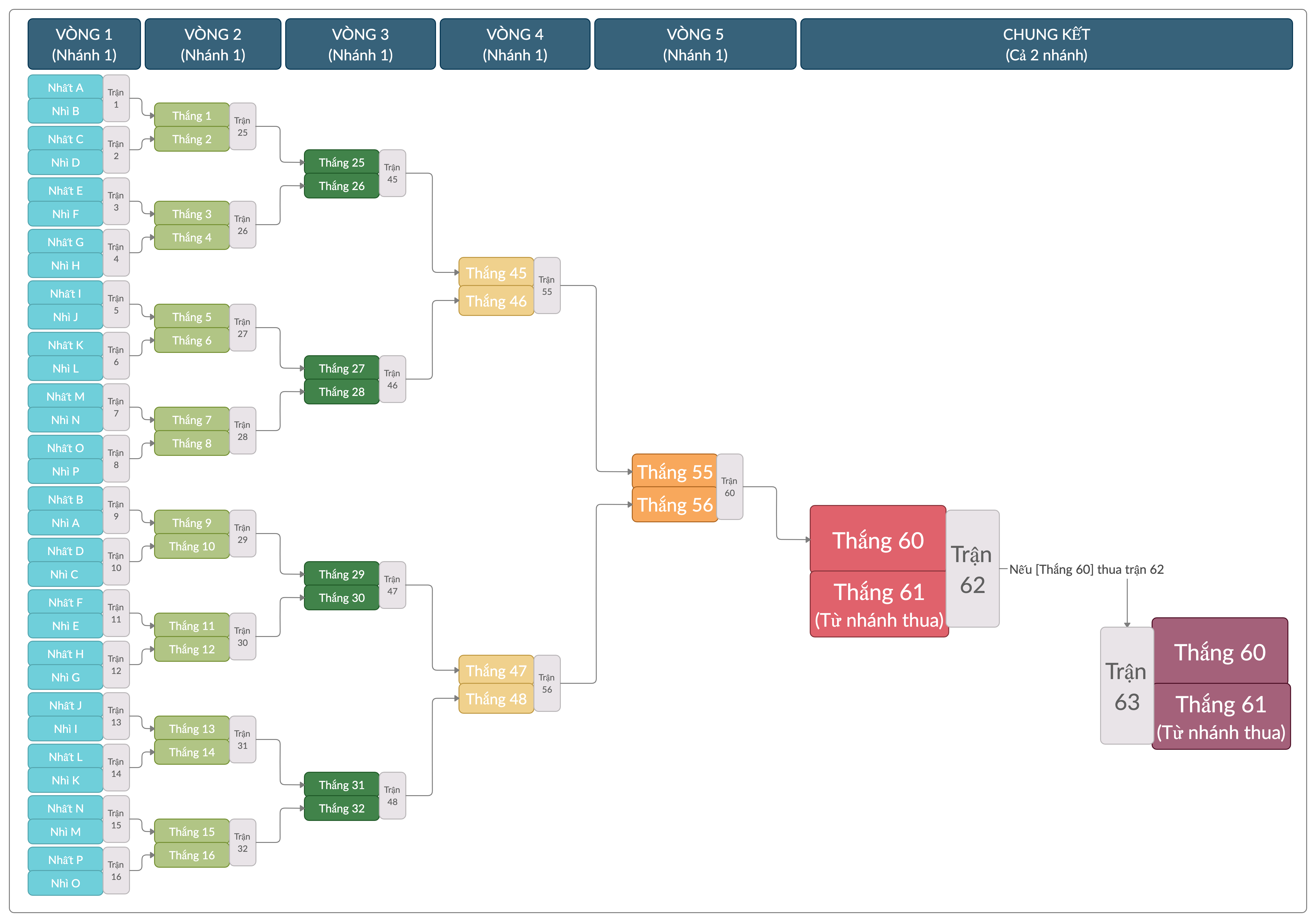 SƠ ĐỒ THI ĐẤU NHÁNH 1 (NHÁNH THẮNG, Nhấn vào hình để phóng to)