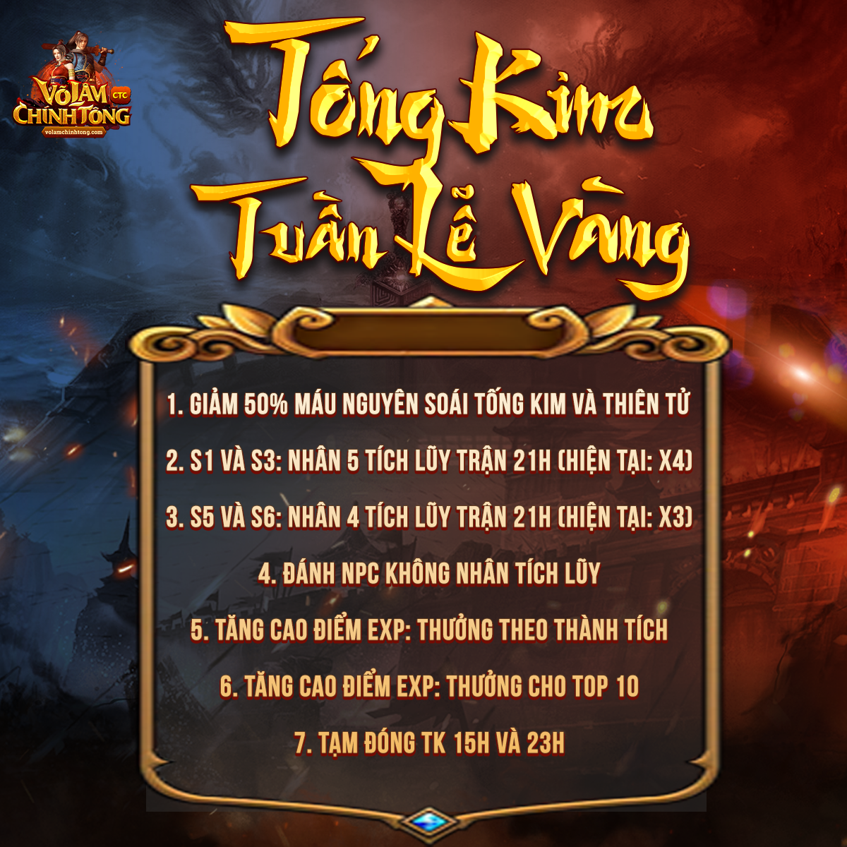 Sau 10 ngày áp dụng, Tống Kim Tuần Lễ Vàng đã được toàn thể các huynh đệ đón nhận, bởi rất nhiều điều chỉnh và lượng Exp thưởng cực lớn.