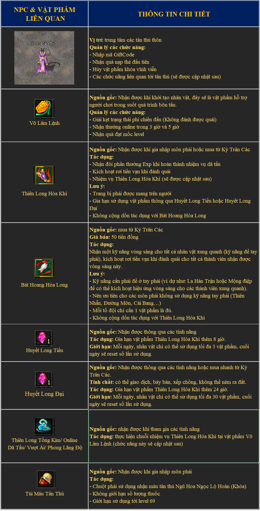 CÁC NPC VÀ VẬT PHẨM LIÊN QUAN: