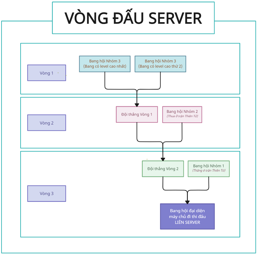 - Như đã thông báo từ trước vào lúc 21:00 ngày 15/04/2024 sẽ diễn ra trận Quốc Chiến Thiên Tử để phân định vị trí Nhóm 1 và Nhóm 2, hoàn tất các vị trí còn thiếu trong sơ đồ thi đấu, như vậy các bang hội chiếm được Biện Kinh và Lâm An hãy nhanh chóng chuẩn bị quân lực cho trận chiến sắp tới và những trận chiến ác liệt sắp tới, một lần nữa xin mời chư vị cùng xem lại Sơ đồ Vòng Loại - Đệ Nhất Bang để chọn ra MỘT bang hội mạnh nhất tại các máy chủ.
