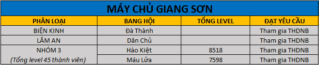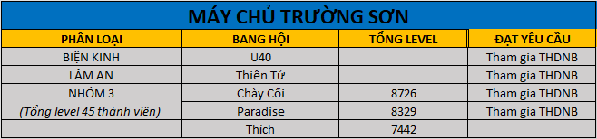 - Những bang hội đăng ký đủ 40 thành viên trở lên mới đủ điều kiện tham gia thi đấu