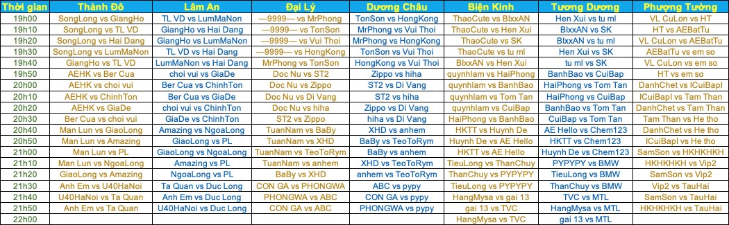 LỊCH THI ĐẤU VÒNG BẢNG SONG TUYỆT