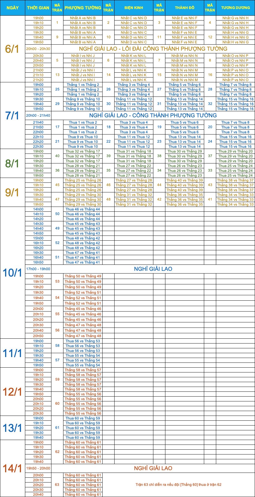 LỊCH THI ĐẤU VÒNG BẢNG: Ngày 05/01/2021