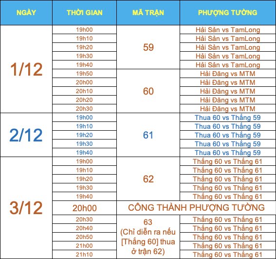 LỊCH THI ĐẤU NGÀY 1/12: Vòng 4 đội