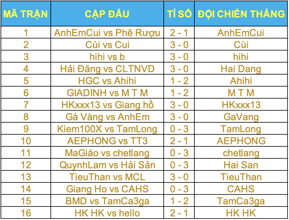 KẾT QUẢ THI ĐẤU NGÀY 24/11: