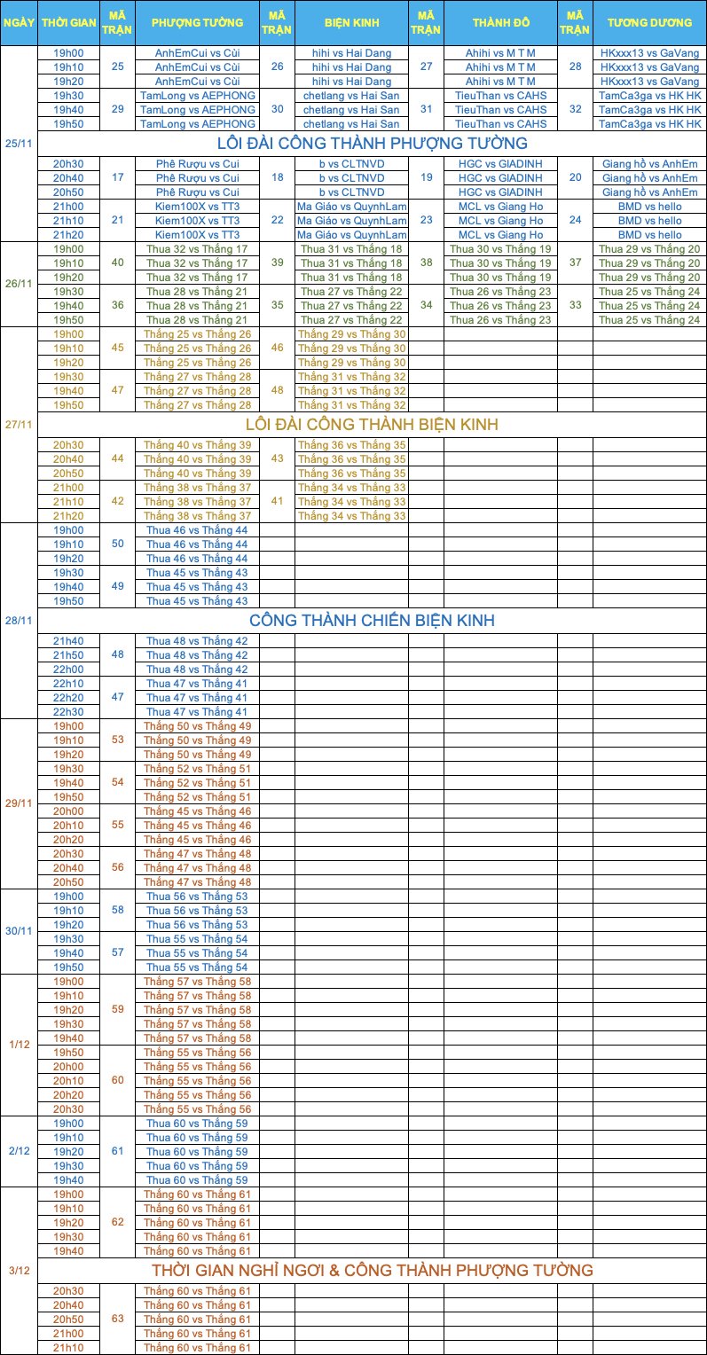 LỊCH THI ĐẤU VÒNG TIẾP THEO (NGÀY 25/11):