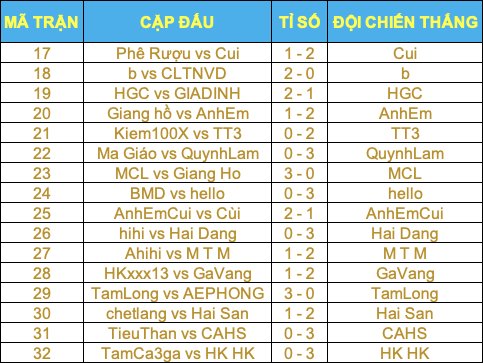 KẾT QUẢ THI ĐẤU NGÀY 25/11: