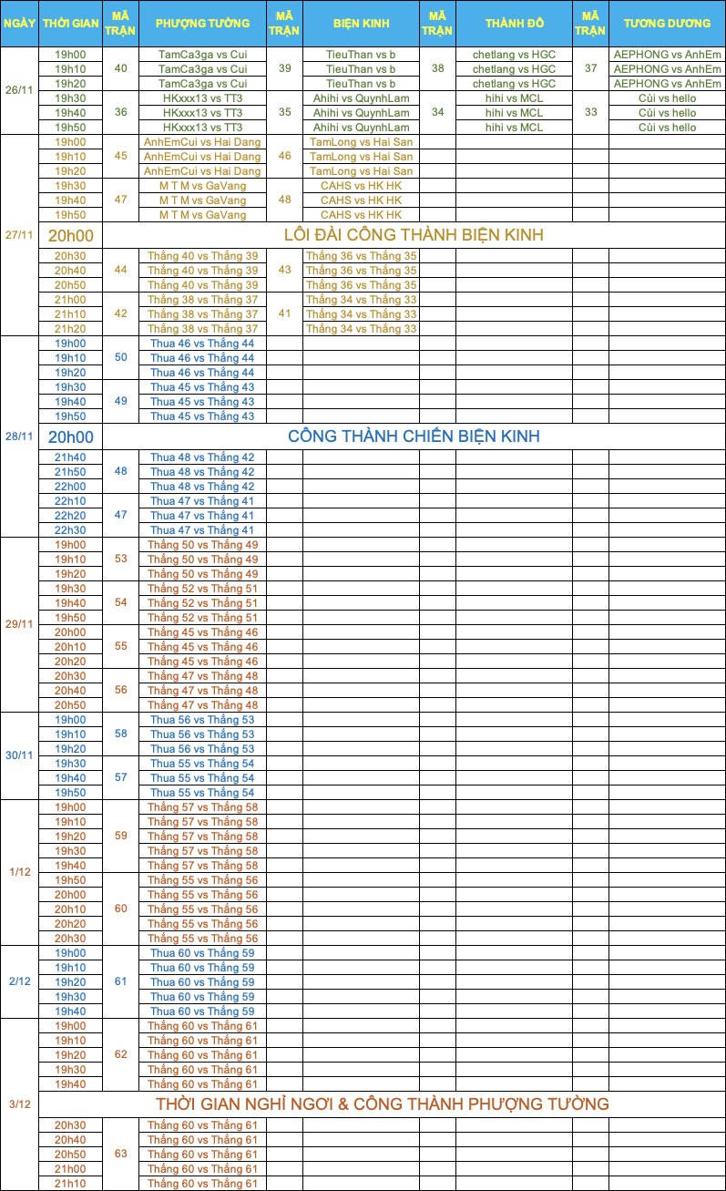 LỊCH THI ĐẤU NGÀY 26/11