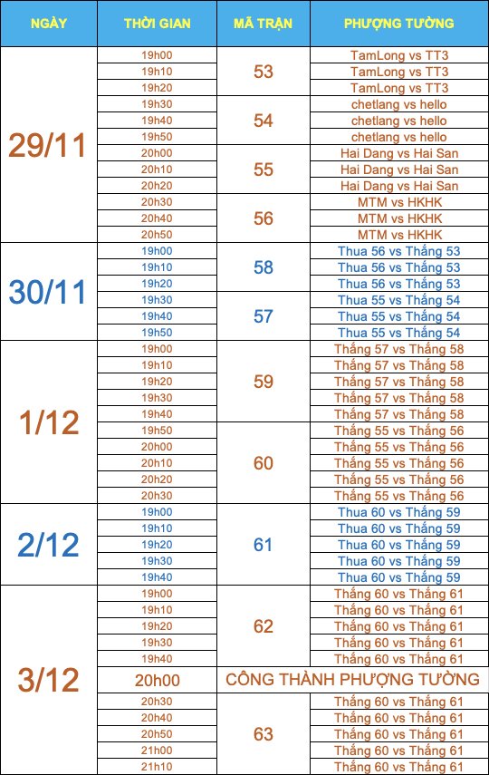 Ngày 29/11 sẽ tiếp tục thi đấu ở cả 2 nhánh. Và sẽ chọn ra 6 đội đi tiếp vào vòng trong