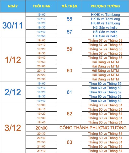 Xin gửi đến chư vị lịch thi đấu của ngày 30/11: