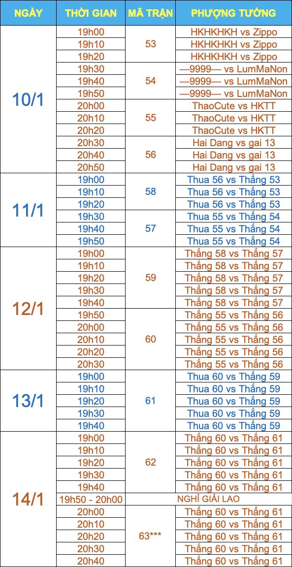 | 51 | TuanNam vs LumMaNon | 0 - 2 | LumMaNon |