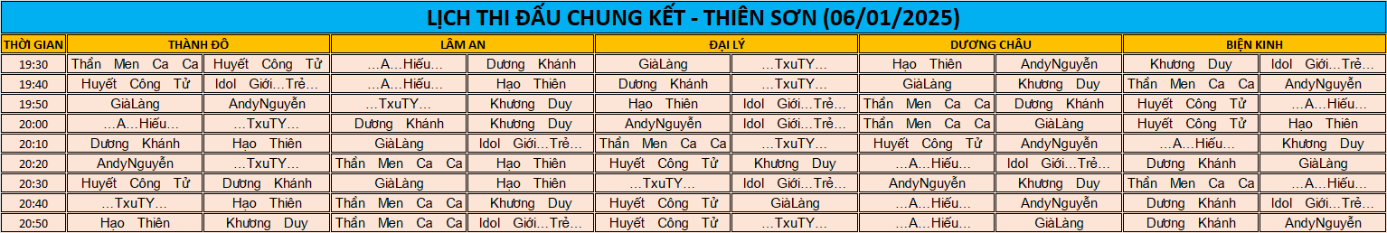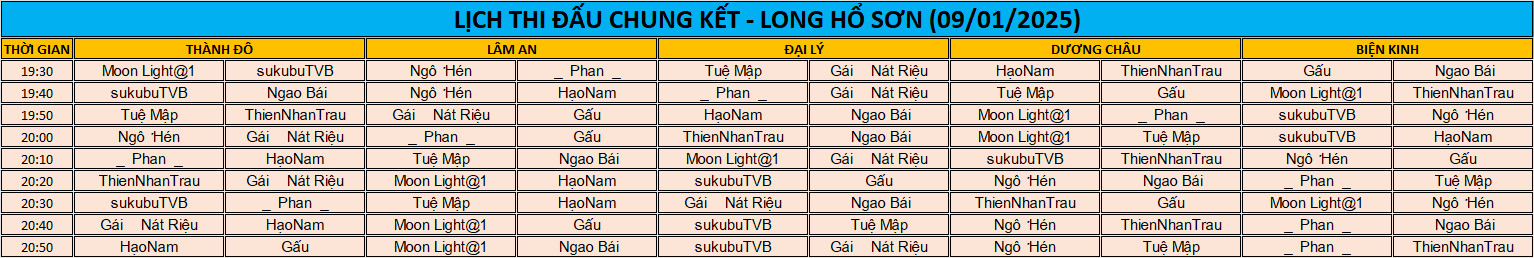 LỊCH THI ĐẤU CHUNG KẾT - MÁY CHỦ LONG HỔ SƠN: 09/01/2025