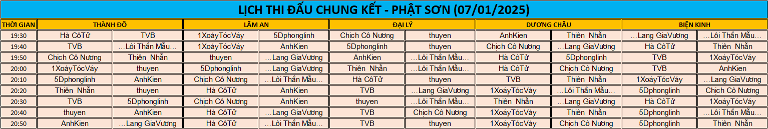 LỊCH THI ĐẤU VÒNG LOẠI - MÁY CHỦ PHẬT SƠN: 07/01/2025