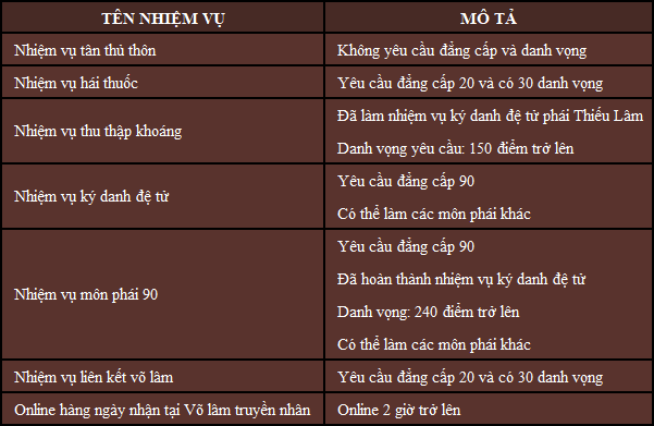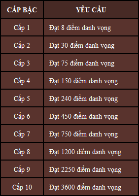 NHIỆM VỤ LIÊN QUAN TỚI DANH VỌNG