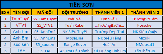 - Trao thưởng danh hiệu và vật phẩm cho các chiến đội TOP 1~6 của giải đấu Tam Tuyệt - Mùa 6