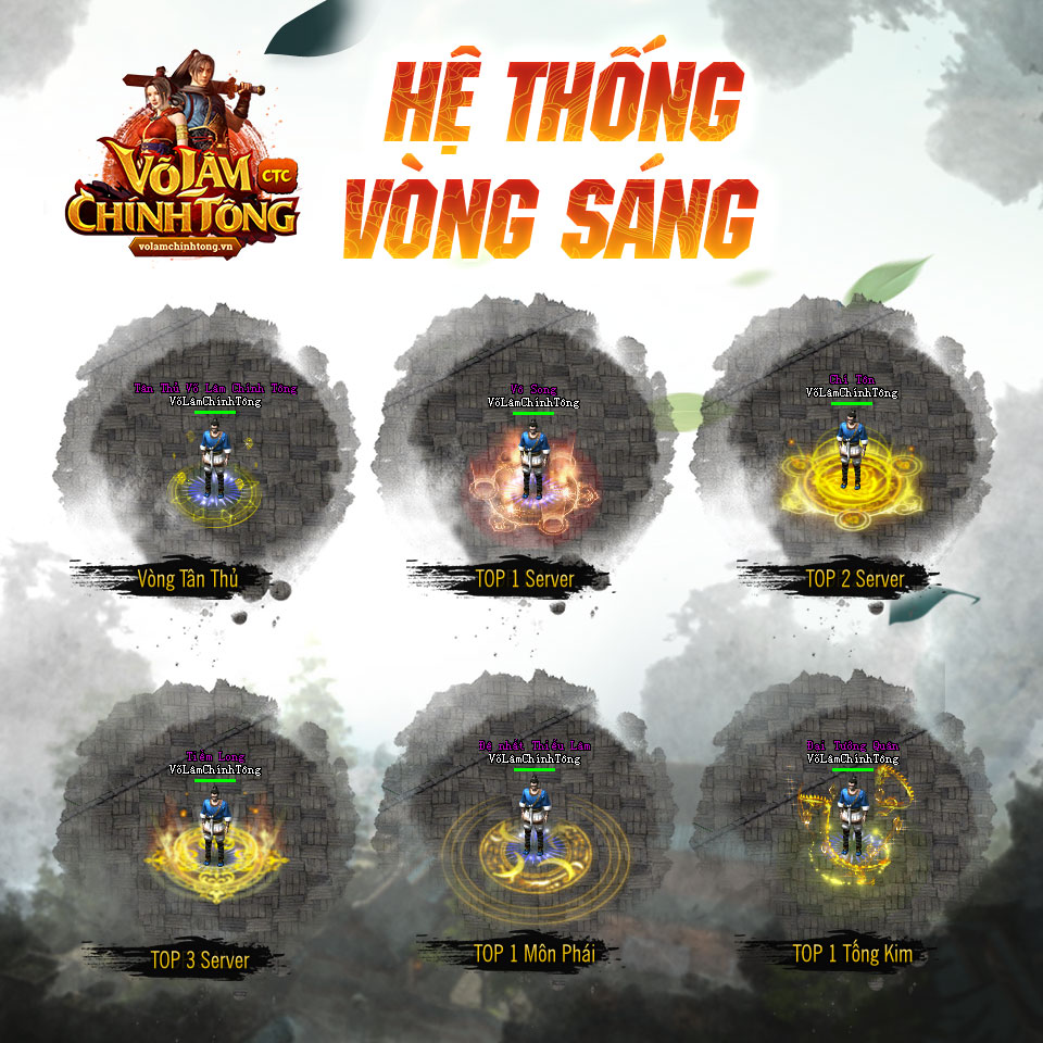 - Hào quang và danh hiệu cho cao thủ hạng 1, hạng 2, hạng 3 thế giới và 10 cao thủ hạng 1 của mỗi môn phái