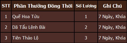 - Phần thưởng này sẽ phát thưởng cho 10 nhân vật có thứ tự nhận đầu tiên (từ 1 – 10).
