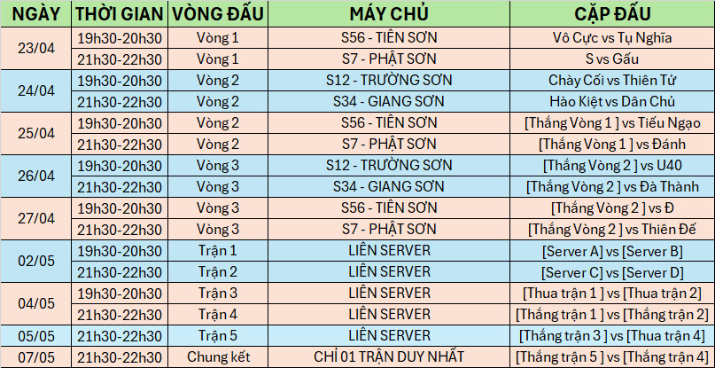 THDNB - LỊCH THI ĐẤU VÒNG SERVER