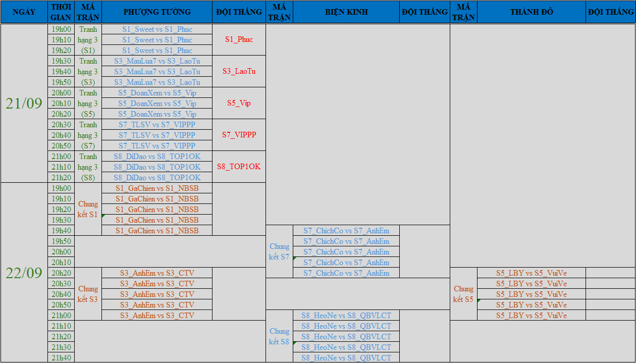 TT5 - LỊCH THI ĐẤU CHUNG KẾT NGÀY 22/09